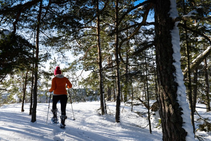 Detta äventyr tar dig in i naturen där du kan njuta av ett vinterunderland! Snöskovandra över frysta sjöar, genom snöiga skogar, och njut av att vara bland naturen i denna sagomiljö.